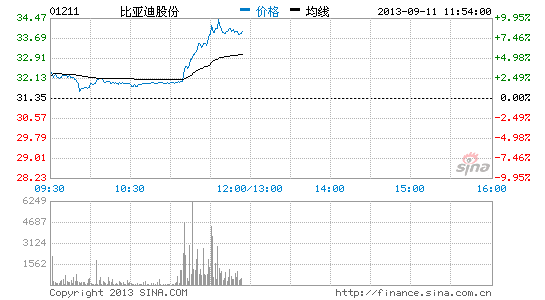 截至11:30 ,比亞迪H股漲8.61報34.05港元,A股漲8.39%報41.1元。