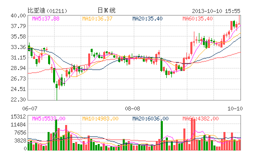比亞迪(01211)的e6電動車即將登陸臺灣,消息刺激今日股價升超3%,兼高見40元的兩年半高位。