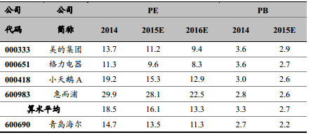 4、可比上市家電公司估值表