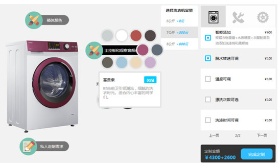 看起來不錯的海爾官方商城的洗衣機定制頁面: