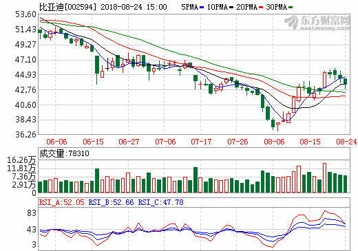 24日新能源汽車概念股盤后統(tǒng)計 比亞迪跌幅1.96%