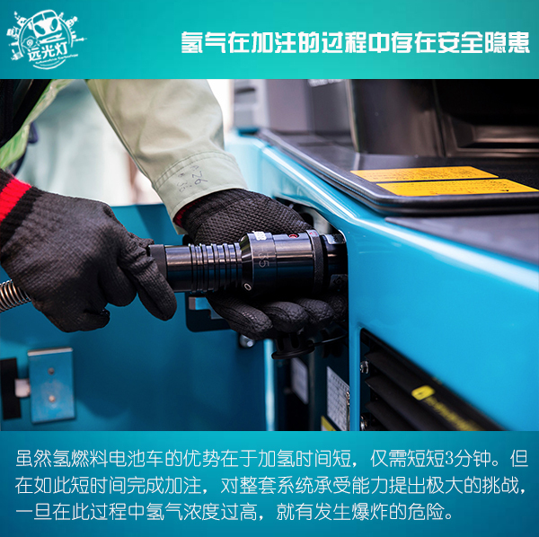 雖然氫燃料電池車的優勢在于加氫時間短,僅需短短3分鐘。但在如此短時間完成加注,對整套系統承受能力提出了極大的挑戰,一旦在此過程中氫氣濃度過高,就有發生爆炸的危險。