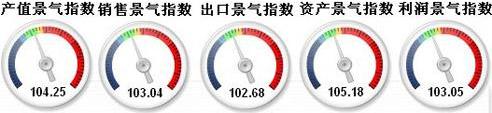 從分指標運行指數來看,2011年12月中輕產值景氣指數104.25、銷售景氣指數為103.04、出口景氣指數102.68、資產景氣指數105.18、利潤景氣指數103.05。與上月相比,各項指數均有不同程度的回升。