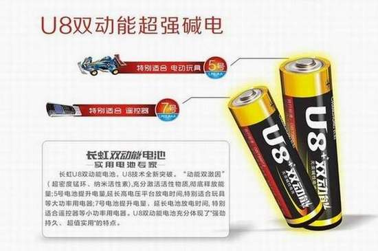 作為中國首批通過環境標志認證的長虹新能源公司,也是中國電池行業首批獲“AAA級企業信用等級”認證的企業,公司以科技為動力,不斷按消費者需求推出新品,繼“小辣椒”、“U8”電池后,又推出的“U8雙動能”升級版堿性電池,在能量、安全性和儲存時間上都大大提升了一個臺階,成為中國領跑堿性電池業的先行者。