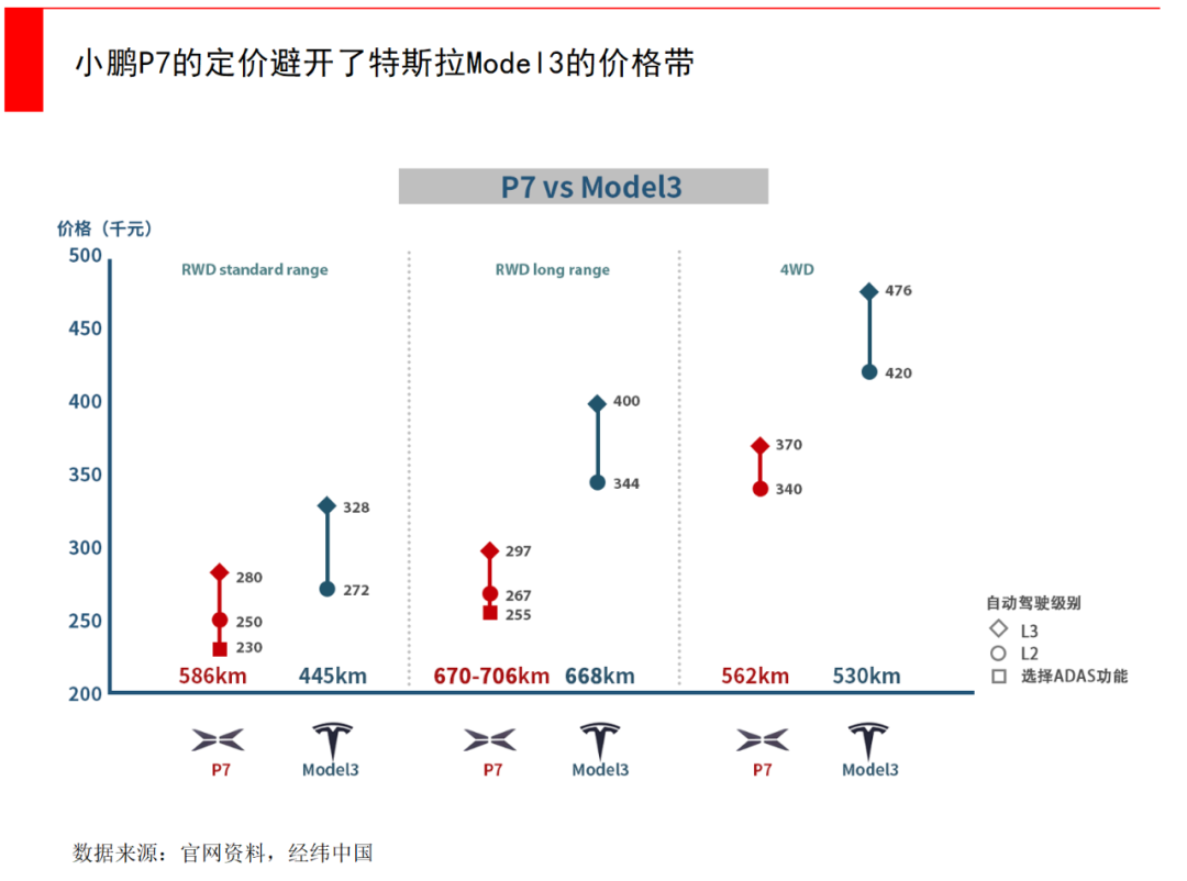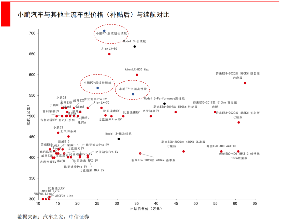 小鵬的定位就是這么清晰,它可能并不奢華,但針對(duì)的就是高性?xún)r(jià)比市場(chǎng),它的定價(jià)整體低于特斯拉、蔚來(lái)和理想,產(chǎn)品力體現(xiàn)在續(xù)航和智能上,P7是目前續(xù)航里程最高的純電量產(chǎn)車(chē)型之一。