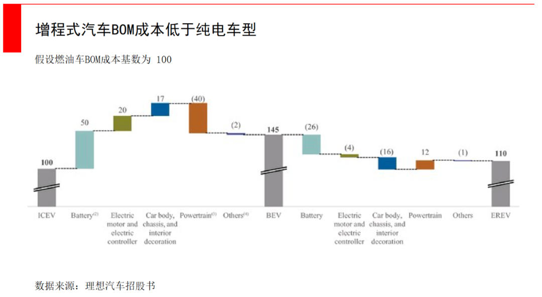 除了高速工況表現(xiàn)一般的先天劣勢(shì),增程比純電價(jià)格更低(因?yàn)殡姵匕惭b量小)、BOM成本較低,以及最重要的——車(chē)主沒(méi)有“里程焦慮”。