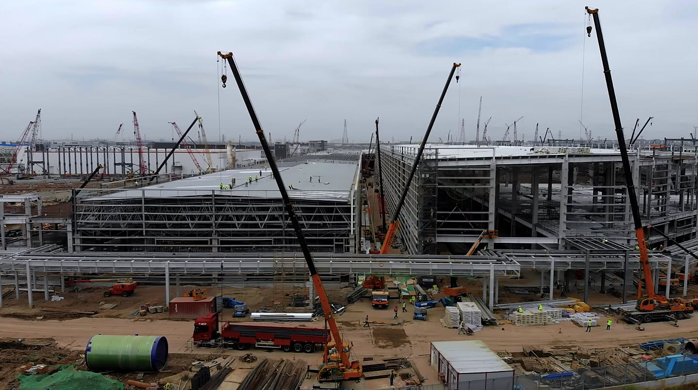 特斯拉上海廠悄然建設(shè)Model Y車間 開始鋪設(shè)屋頂