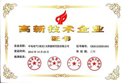 近日,由國家科技部、國家稅務總局、財政部等三部委聯合成立的“全國高新技術企業認定管理工作領導小組”,委托各省、市、自治區科技部門組織的國家級高新技術企業的審核和認定工作全面結束,中電電氣太陽能研究院順利通過了2012年第二批國家高新技術企業認定,正式獲得國家高新技術企業認證證書。