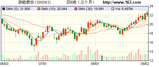 截至發稿,勁勝股份下跌0.85%,報22.20元。