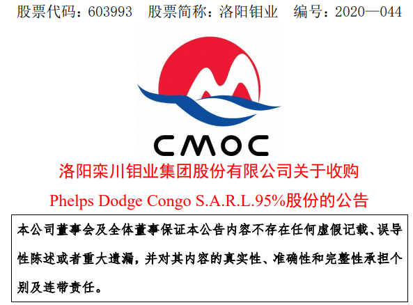 洛陽鉬業已間接取得PDC95%的股份,獲得剛果(金)Kisanfu銅鈷礦95%的權益。而早在2016年,洛陽鉬業以 ... 查閱全文