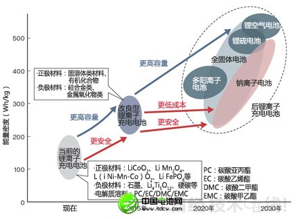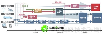 目前推進(jìn)的材料開發(fā)的目標(biāo)是,2020年在確保安全性的同時(shí)使能量密度達(dá)到300Wh/kg。2030年使Li-S電池和鋰空氣電池等500Wh/kg以上的新一代電池實(shí)現(xiàn)實(shí)用化。