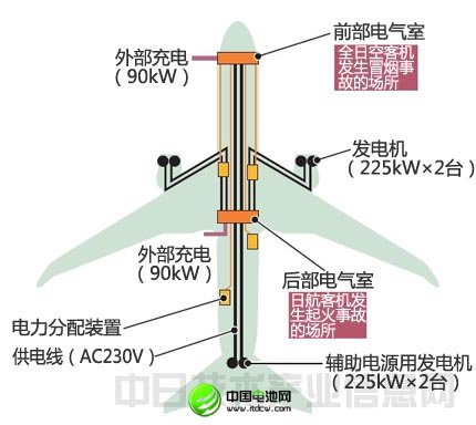 787客機有前后兩個電氣室。其中,日航客機后部電氣室、全日空客機前部電氣室的電池模塊出現(xiàn)異常。