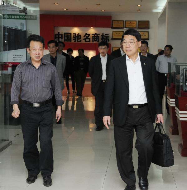 陳新滋校長(zhǎng)(前右)一行在徐海波博士(前左)的陪同下參觀公司