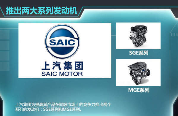 同時在動力總成上,上汽同樣有著強大的技術支持,在目前發布的動力總成中共包括兩個系列的發動機:MGE系列和SGE系列。MGE系列發動機是由上汽自主研發,包括1.8T,2.0T,2.0L三種不同的類型,主要搭配TST 6速雙離合變速器,將配置在雙品牌的中高級車型及SUV車型上。SGE系列是上汽與美國通用聯合研發共有11款,排量從1.0L至1.5L,傳動方面與其匹配的是TST 7速雙離合變速器,這一組合搭載在MG GT和榮威換代350、550等中小型車型中。未來將在全部量產車上應用新的發動機構架,并且將全面普及直噴動力。