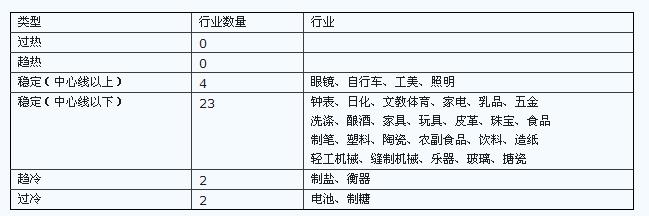 2013年2月,中國輕工業(yè)信息中心對全國輕工行業(yè)32個行業(yè)進行監(jiān)測,行業(yè)景氣情況如下:
