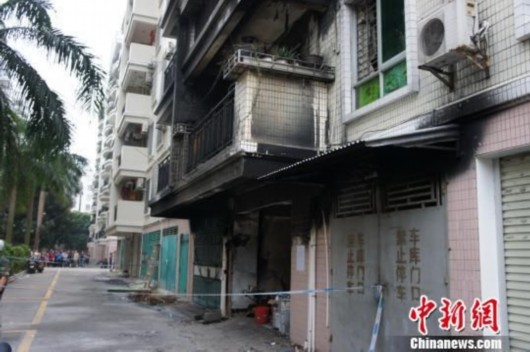記者趕到事發(fā)地時,現場已經被封鎖,大批消防、公安干警還在進行勘查、取證。事發(fā)樓房1至5樓外全是一片黑乎乎的,2樓陽臺放置的皮具沙發(fā)被燒得面目全非。而樓房東北面2樓的窗戶,還有一條用碎布扎成的長布條從窗里往外垂下。