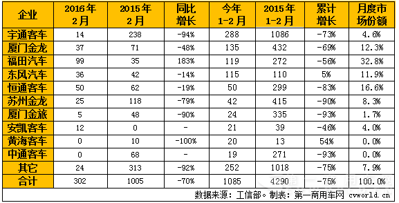 先看看新能源:今年2月份,國(guó)內(nèi)純電動(dòng)客車(chē)產(chǎn)量只有975輛,環(huán)比下降54%,同比上升62%;這個(gè)同比增幅,比1月份的97%減少35個(gè)百分點(diǎn),年初至今的月度增幅不斷放緩。2月份,國(guó)內(nèi)混合動(dòng)力客車(chē)產(chǎn)量只有485輛,環(huán)比下降42%,同比下降28%;2月份的糟糕表現(xiàn),也讓1-2月的混合動(dòng)力客車(chē)?yán)塾?jì)產(chǎn)量降至1492輛,同比下滑12%。