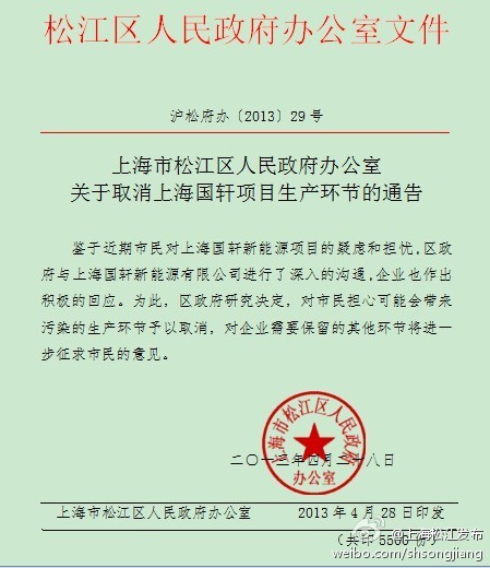 記者28日從上海市松江區(qū)人民政府官方微博“松江發(fā)布”獲悉,鑒于近日市民對(duì)于上海國(guó)軒新能源項(xiàng)目的疑慮和擔(dān)憂(yōu),松江區(qū)政府與“上海國(guó)軒”進(jìn)行了深入溝通,企業(yè)也作出積極回應(yīng)。