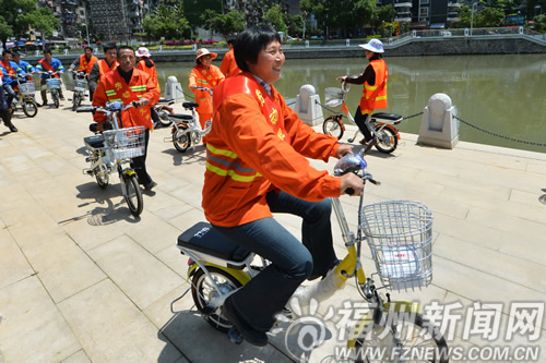 “五一”節(jié)前剛剛獲全國(guó)“五一勞動(dòng)獎(jiǎng)?wù)隆钡氖袃?nèi)河管理處護(hù)河員羅祥英,昨日又收獲了一份勞動(dòng)節(jié)禮物——福建省市總工會(huì)送來(lái)的電動(dòng)自行車。昨日共有20名福州市一線環(huán)衛(wèi)工人收到了同樣的節(jié)日禮物。