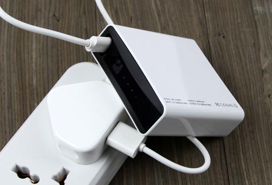 由于這款移動電源的輸入為5V 1A,我們先使用蘋果充電器為它充電。在此過程中,白色LED指示燈開始逐個閃爍,為8400mAh的鋰離子電池充滿電所需時間在10小時左右,也就是睡一覺即可充滿。如果用戶換用電腦的USB接口充電的話,由于這些接口一般只能提供5V 500mA的輸出,充電時間還會延長不少。在充電過程中,移動電源發(fā)熱并不明顯。