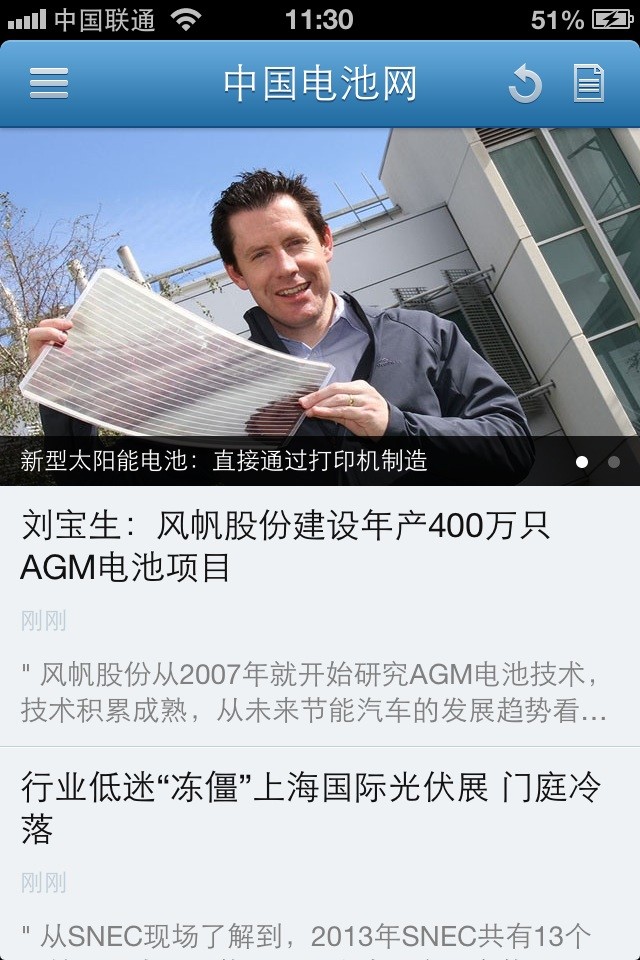 【本網訊】在中國電池網上線兩周年之際,中國電池網手機客戶端(下載地址:http://m.0758car.com/about/app.html)同步升級,讀者期待的列表頁新增了焦點圖輪播功能。昨日(18日)已編譯上線,讀者可更新下載安裝閱讀。