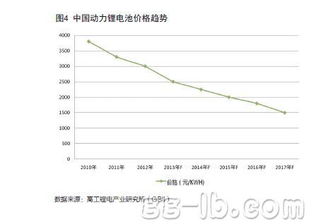 電動(dòng)汽車(chē)的發(fā)展,電動(dòng)車(chē)的價(jià)格最主要,華南鋰電論壇的專(zhuān)家就認(rèn)為不超過(guò)一般汽車(chē)300美金的話(huà)就比較容易發(fā)展起來(lái)。客觀來(lái)說(shuō),只要消費(fèi)者覺(jué)得新能源汽車(chē)價(jià)錢(qián)和傳統(tǒng)汽車(chē)差不遠(yuǎn),技術(shù)過(guò)硬安全有保證,駕駛起來(lái)充電換電也方便,再加上國(guó)家給了那么多優(yōu)惠政策,買(mǎi)這么一輛車(chē),在獲利的同時(shí),又為聲勢(shì)浩大的節(jié)能減排運(yùn)動(dòng)貢獻(xiàn)一份微薄之力,可謂一箭多雕,何樂(lè)而不為。而要做到這一點(diǎn),在其他硬件成本幾乎相差不大的情況下,大幅降低電池成本成為唯一的途徑,根據(jù)高工鋰電產(chǎn)業(yè)研究所(GBII)調(diào)研,當(dāng)鋰電池成本降低到200-250美元/千瓦時(shí)的時(shí)候,電動(dòng)車(chē)的價(jià)格和傳統(tǒng)汽車(chē)的價(jià)格就相差無(wú)幾了。即到2017年的時(shí)候,動(dòng)力鋰電池的價(jià)格或?qū)⑾陆档?500元/千瓦時(shí)(圖4),屆時(shí)或?qū)⒂瓉?lái)新能源汽車(chē)爆發(fā)式增長(zhǎng)。
