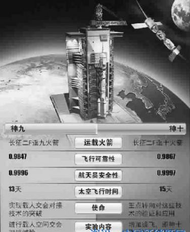 發(fā)射前,八院退休專家陶建中介紹了此次飛行成功的重大意義。他說,這3名航天員進入太空后,我國便有12人次的航天人進入過太空。待神舟十號與天宮一號交會對接及繞飛成功后,即實現(xiàn)8次交會、6次對接和1次繞飛。天宮一號和神舟飛船的組合飛行時間,神舟九號是10天,神舟十號則將有12天,突破了最初的設計指標,待神舟十號的3名航天員順利返回,意味著這一任務的完成又向前跨越了一步。