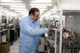 劍橋大學石墨烯研究項目的負責人安德烈·法拉利博士正在檢查用于原子直徑厚度材料實驗的設備。