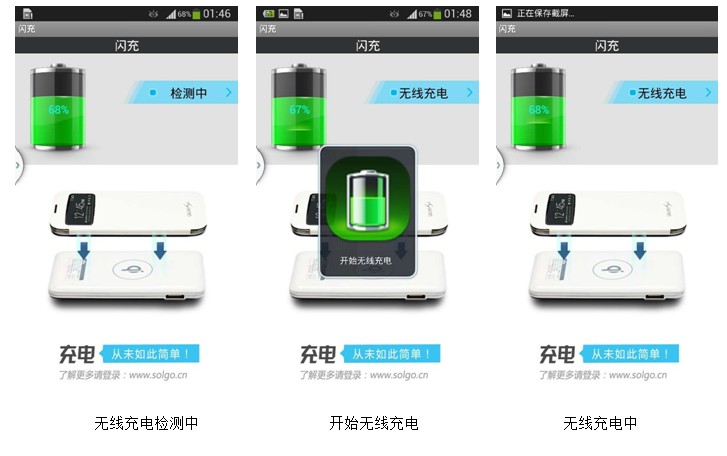 一塊看似普通的電池加“閃充“客戶端,就可讓三星S4從此告別數據線的煩惱。放上即充,拿開又可電話、游戲,工作娛樂兩不誤,簡直羨煞旁人。無線充電再也不僅僅是nokia的專利,讓我們解放S4,讓他更加完美!當然這一切無線充電功能的實現,“閃充”功不可沒。松果數碼強悍軟件”閃充”的部分功能,讓我們先一睹為快。