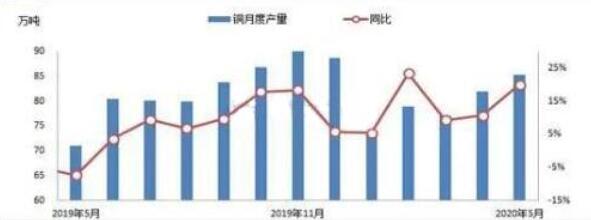 據上圖所示,企業(yè)產量供應相對穩(wěn)定,數據顯示,2020年4月國內電解銅冶煉總產量為81.975噸,而5月銅產量増加至35.3萬噸,同比増加19.97%,市場沒有必要擔憂供應問題。
