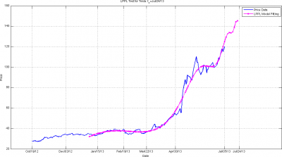 圖1.特斯拉股價走勢與LPPL模型擬合