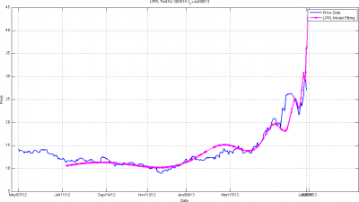 圖3.德賽電池股價走勢與LPPL模型擬合
