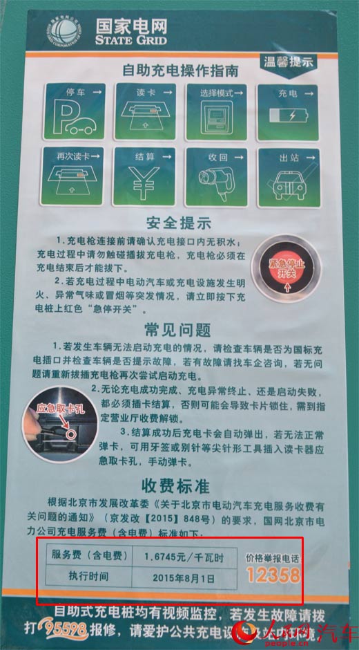 國家電網(wǎng)充電樁上已明確標(biāo)明電樁使用收費(fèi)標(biāo)準(zhǔn)