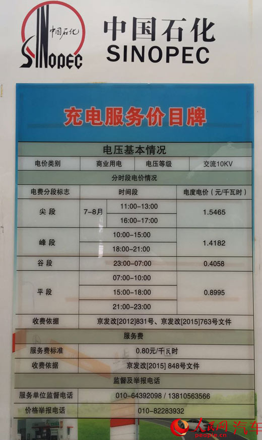 中國石化充電服務價目牌