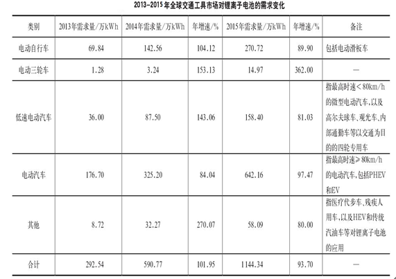 具體來看,交通工具電動化市場是未來幾年鋰離子電池最值得關注的大市場。從表1可以看到,從兩輪到四輪,各類交通工具對鋰離子電池的市場需求都呈現出快速增長態勢。可以認為,人類的交通工具電動化時代已經到來。