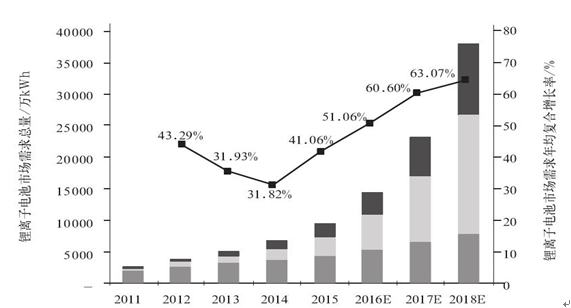 從鋰離子電池的市場增速來看,從 2011年至 2018年,大致會經歷一個“降低→提升”的“V”字型過程。由于鋰離子電池性能提升的速度趕不上市場需求,以及目前用量最大的消費類電子產品市場已出現飽和的狀況,2011-2014年,鋰離子電池市場需求的年增幅會持續下降。2014年之后,在價格大致保持的前提下,鋰離子電池能量密度和循環壽命等關鍵指標會有一個較為明顯的提升過程,同時,鋰離子電池和IT技術的結合也將度過磨合期而漸入佳境,困擾電動汽車發展的一些問題會逐步得到解決,鋰離子電池市場將進入一個新的發展的快車道。