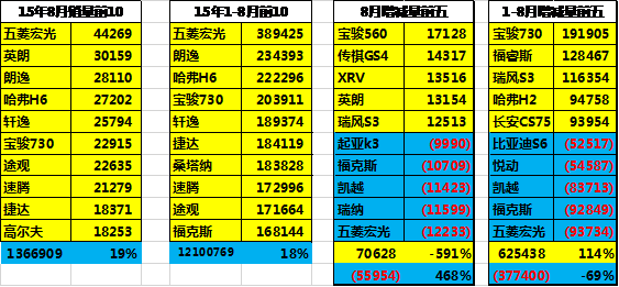 8月的車市主要強勢車型增量貢獻增量基本都是新車。15年8月的減量車型主要是前期強勢車型的調整,合資品牌丟量表現的較突出。