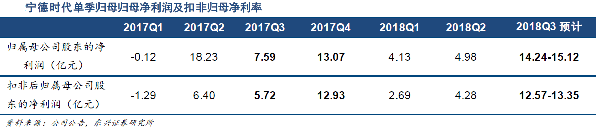 受新能源汽車補貼金額年降預期的影響,新能源汽車會出現年底銷售高峰。公司2017年四季度歸母凈利潤和扣非歸母凈利潤環比增速分別為72%、126%。若2018年四季度歸母凈利潤環比增速按照0%或者2017年四季度的72%,則2018年四季度歸母凈利潤約為14.24~24.49億元,2018年四季度業績可期。