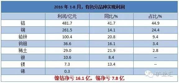 2015年礦業(yè)行業(yè)最不景氣的一年,可是2016年冰凍的礦業(yè)行業(yè)開始遇暖融化,鋁扭虧為盈,鉛鋅迎來了連續(xù)漲價(jià),有色金屬行業(yè)前景一片大好,可是在其他金屬行業(yè)欣欣向榮之時(shí),鎳鈷2016年1-8月份虧了16.1億元。