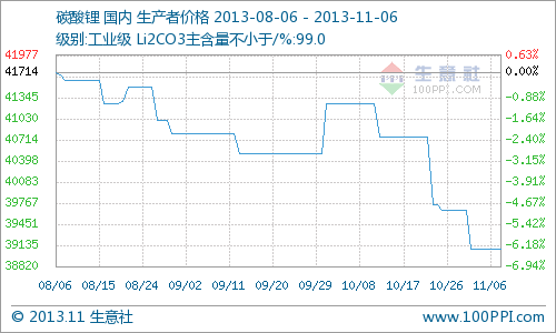 據(jù)生意社碳酸鋰價格監(jiān)測,自10月以來國內(nèi)碳酸鋰價格一直多次下挫,且新產(chǎn)能激增,鋰電池的技術(shù)研發(fā)亦有不少尚未攻克的難題,預(yù)計后期碳酸鋰價格或會繼續(xù)小幅下行。