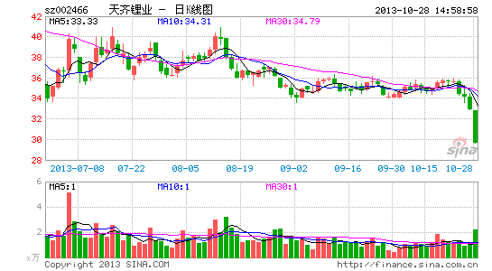 10月28日,天齊鋰業(002466.SZ)發布2013年三季報稱,2013年第三季度,公司實現營業收入1.04億元,同比略降1.17%,歸屬上市公司凈利潤-288萬元,同比下降117.85%。而綜合前三季度,2013年1-9月,公司