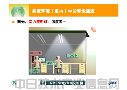 谷岡正在開(kāi)發(fā)的是在室內(nèi)光線下也能充分發(fā)電的太陽(yáng)能電池。據(jù)介紹,一般室內(nèi)的照度為窗前1000lux、桌上400lux、桌下100lux。谷岡的目標(biāo)是開(kāi)發(fā)出只要達(dá)到桌上400lux的照度,就能驅(qū)動(dòng)傳感器網(wǎng)絡(luò)終端的太陽(yáng)能電池(圖1)。