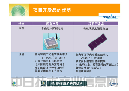 此次的開(kāi)發(fā)目標(biāo)是輸出功率達(dá)到現(xiàn)有太陽(yáng)能電池的兩倍以上,即150μW以上,轉(zhuǎn)換效率達(dá)到7%以上。電池尺寸為10cm2以下(圖4)。