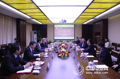 雙方在會(huì)議室的座談交流由一部題為“至誠(chéng)合作共襄發(fā)展”的視頻專題片開啟,一次次雙方高層領(lǐng)導(dǎo)的互訪,一項(xiàng)項(xiàng)新合作項(xiàng)目的開啟,都定格為一個(gè)個(gè)經(jīng)典的歷史畫面。柯愛(ài)倫女士用“協(xié)力創(chuàng)新”四個(gè)字總結(jié)概括了杜邦公司與中電電氣十四年的合作歷史,并非常高興雙方之間的相互信任和坦誠(chéng)合作在不斷加強(qiáng)和深入。隨后,雙方就共同關(guān)注的光伏產(chǎn)業(yè)市場(chǎng)前景、Nomex紙的新應(yīng)用、蜂窩材料和光伏輔料領(lǐng)域的合作等進(jìn)行了深入交流。