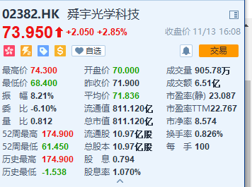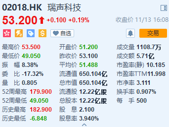 在今天港股開盤后,蘋果產(chǎn)業(yè)鏈公司瑞聲科技和舜宇光學(xué)科技分別大跌7.44%和4.17%,瑞聲科技的股價也跌破50港元,創(chuàng)3年來低點。但截至收盤,兩家公司止跌反漲,漲幅分別為0.19%和2.85%。