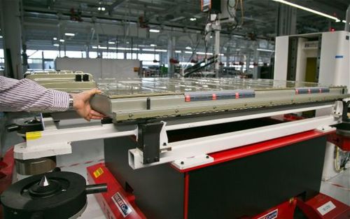 由于與輪距等寬,電池組的兩側(cè)分別與車輛兩側(cè)的車門檻板對(duì)接,用螺絲固定。電池組的橫斷面低于車門檻板。從正面看,相當(dāng)于車門檻板“掛著”電池組。其連接部分如下圖所示。