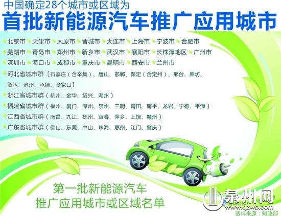 北京、天津、太原等28個城市或區域被確認為首批新能源汽車推廣應用城市。其中,包括泉州在內的福建城市群被確定為新能源汽車推廣應用區域。