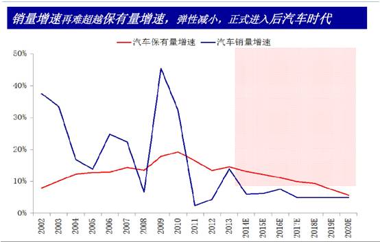 中國的銷量可能還是很難再增長的,但是保有量繼續(xù)在擴張,紅色是保有量的增長速度(見PPT)。大家都知道,要買一個企業(yè)是市場由小變大的過程,但是這個過程中如果是汽車制造過程,像豐田、皇冠這些品牌已經(jīng)深入人心,你想一個小的品牌在這些巨頭下能夠成長起來是很難的,但是服務體系是非常松散和混亂,所以這里面有一些小的企業(yè)是能夠由小變大的機會,就是這個產(chǎn)業(yè)創(chuàng)業(yè)會比較快,新能源、互聯(lián)網(wǎng),包括服務,這些領域都是投資能使小企業(yè)變大企業(yè)。