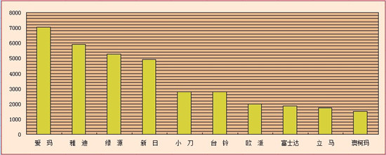 進入11月份以來行業整體的淡季效應比較明顯,南北方市場均呈現出不促不消的狀態,因此,相關市場活動的表現就顯得比較突出。11月份雅迪和綠源在電視營銷方面的動作為其媒體曝光度的提升貢獻不少,雅迪以3699萬元獨家冠名《CCTV家庭幽默大賽》,而綠源電動車冠名的《全能星戰》也非常火爆。另外,小刀和臺鈴在動力推廣方面的營銷活動也吸引了大量的關注度,媒體曝光也出現較大提升。臺鈴五岳動力挑戰賽為其11月份媒體曝光度的提升起到十分積極的作用,其后續的推廣延伸也做的非常及時,將這種效果的影響時效一直延伸到了月底。小刀在南方市場針對新市場進行的動力挑戰賽也取得了非常理想的效果,全國財經類媒體較10月份明顯增加,產品關注度也實現大幅提升。