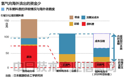 日本企業和政府期待氫氣社會到來的一個原因是“肥水不流外人田”。日本能源綜合工學研究所表示,以汽油為例,由于作為原料的原油價格高,使用者支付的金額約5成落入了中東產油國的囊中。